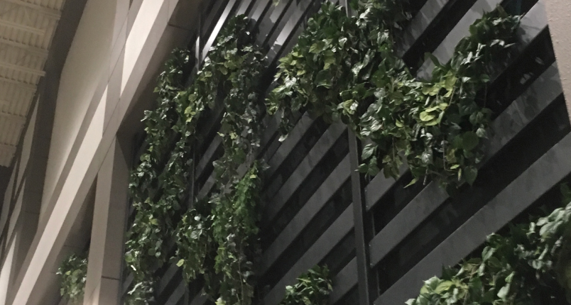 The initial approach was to break the straight, hard lines of marble finished components and to replace them with organic, curved lines through lines of boundaries and composition. Then, the initiative was to soften the harsh environment through biophilic integrations. To do that, we incorporated 15 foot trees and a combination of live and replica greenery on